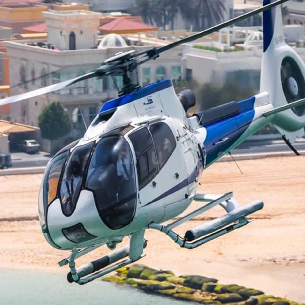 Encompassing all of the breathtaking sights of the Dubai Skyline Tour, this extended 25 minutes helicopter flight will explore beyond the incredible skycrapers and uncover some of Dubai’s secrets. Four of the extra highlights on this tour are the picturesqu Dubai Creek, Emirates Golf Course, the Camel Race Track and Dubai’s Nad Al Sheba Race Track.