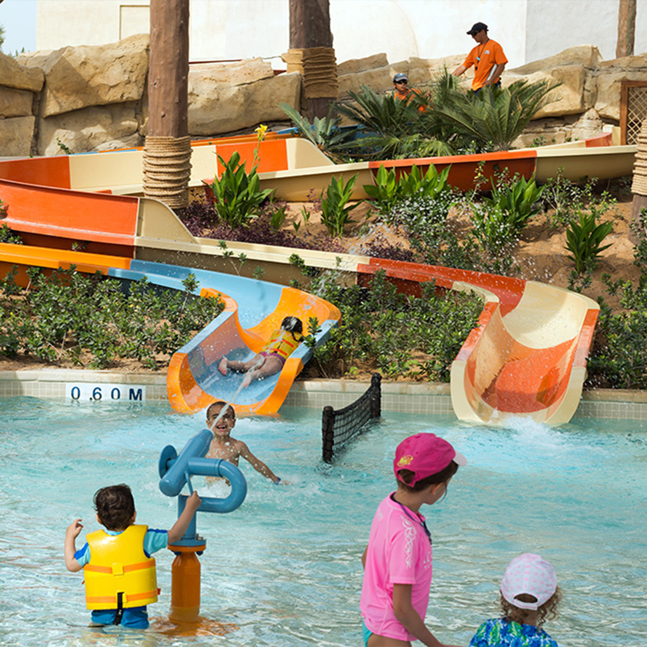 - Four one-of-a-kind rides never been seen before in a waterpark